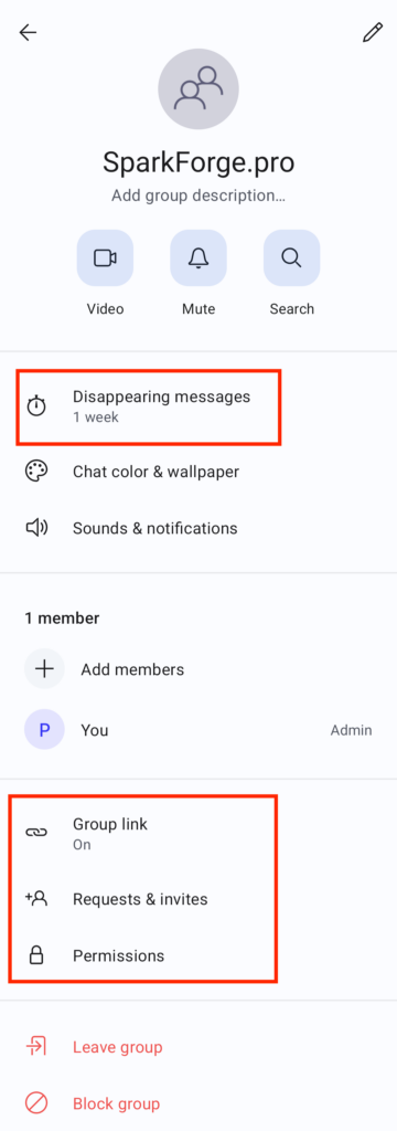 - Changing the group info is self-explanatory.