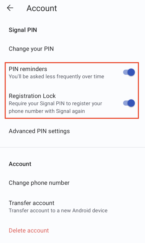 - Registration Lock – The most crucial feature to ensure an outside entity does not take over your account. Requires you to enter your signal pin to transfer your account.