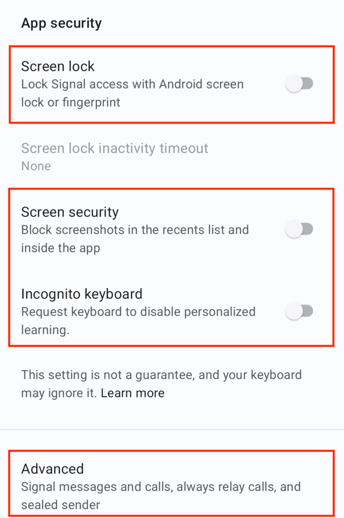 - *Optional* Screen Security will stop your phone from grabbing a screenshot on purpose or by accident.